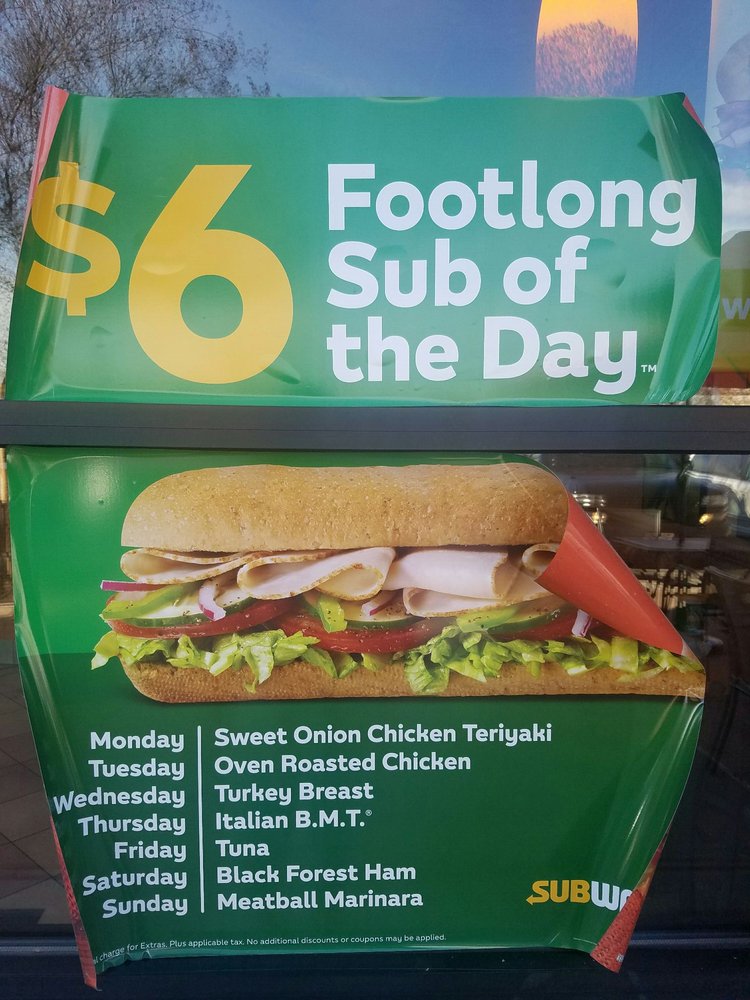 Introducing the menu at Subway - 2600 S Tracy Blvd #1130, a haven for sandwich lovers in Tracy, CA! This location boasts a diverse array of sandwiches, ensuring there's something for everyone. The standout options include the Meatball Marinara Protein Bowl, packed with all eight meatballs you'd expect from a Footlong, served with fresh spinach and vibrant peppers. For those craving heat, the Hotshot Italiano sandwich delivers with its spicy pepperoni, salami, and provolone, all enveloped in artisan bread. Vegetarians will appreciate the Veggie Delite, bursting with crisp veggies and flavor. Customers rave about the swift service, cleanliness, and friendly staff, making it a top choice in the area. Whether you're dining in or grabbing a bite to go, Subway offers a delicious experience complemented by attentive service. Enjoy satisfying meals that cater to all tastes!